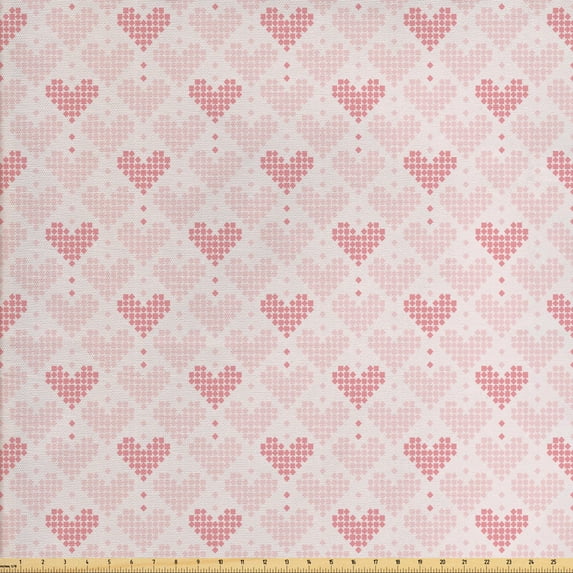 Hero image 0 of Valentine's Day Sofa Upholstery Fabric by the Yard, Abstract Formations of Romantic Hearts with Mini Square Motifs, Decorative Fabric for DIY and Home Accents, Pastel Pink and Rose by Ambesonne, 0 of 4