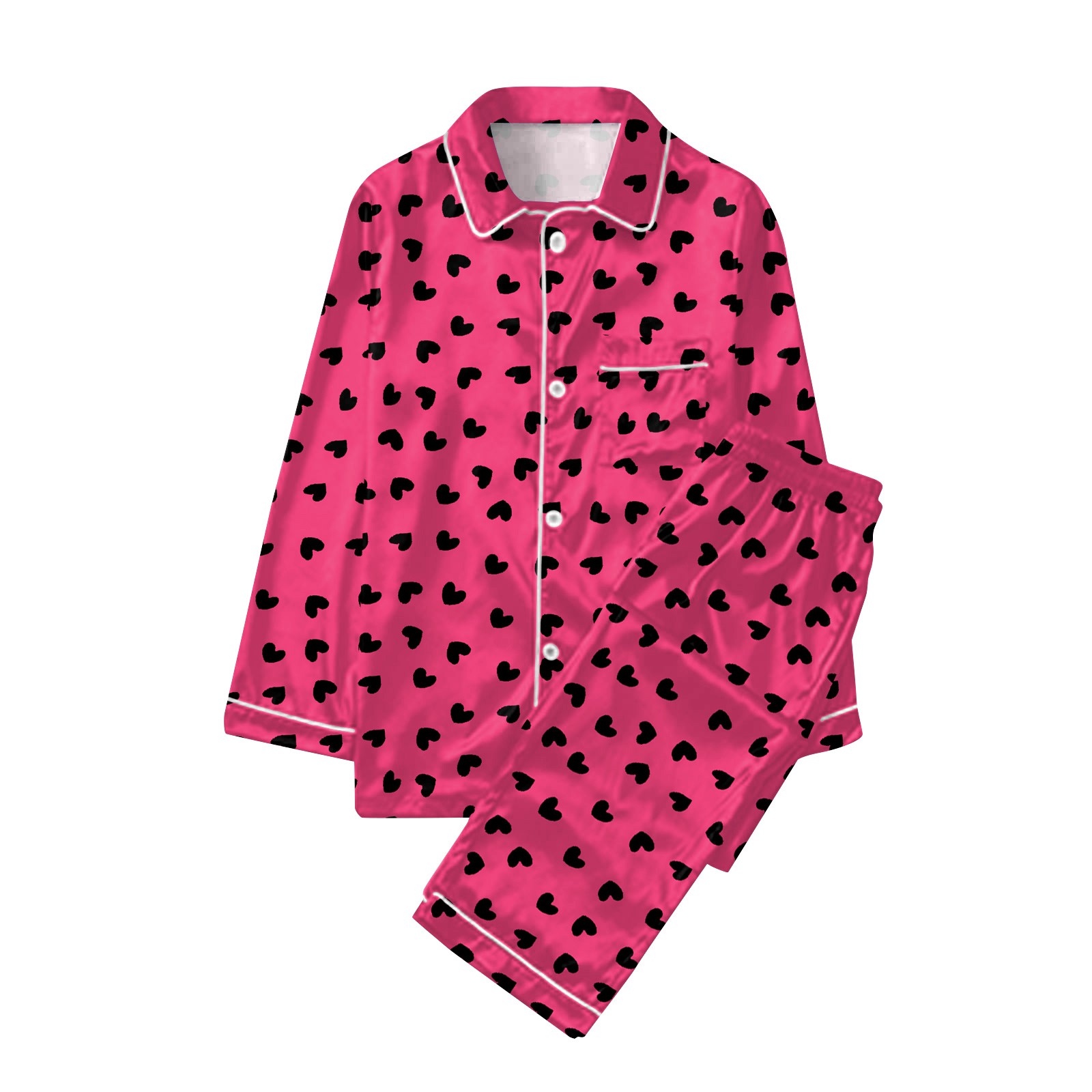 Hero image 0 of Valentine's Day Womens Pajama Set Pink Heart Printed Button Up Pajama Set Long Sleeve Shirt and Pajama Pants Lounge Sets, 0 of 4