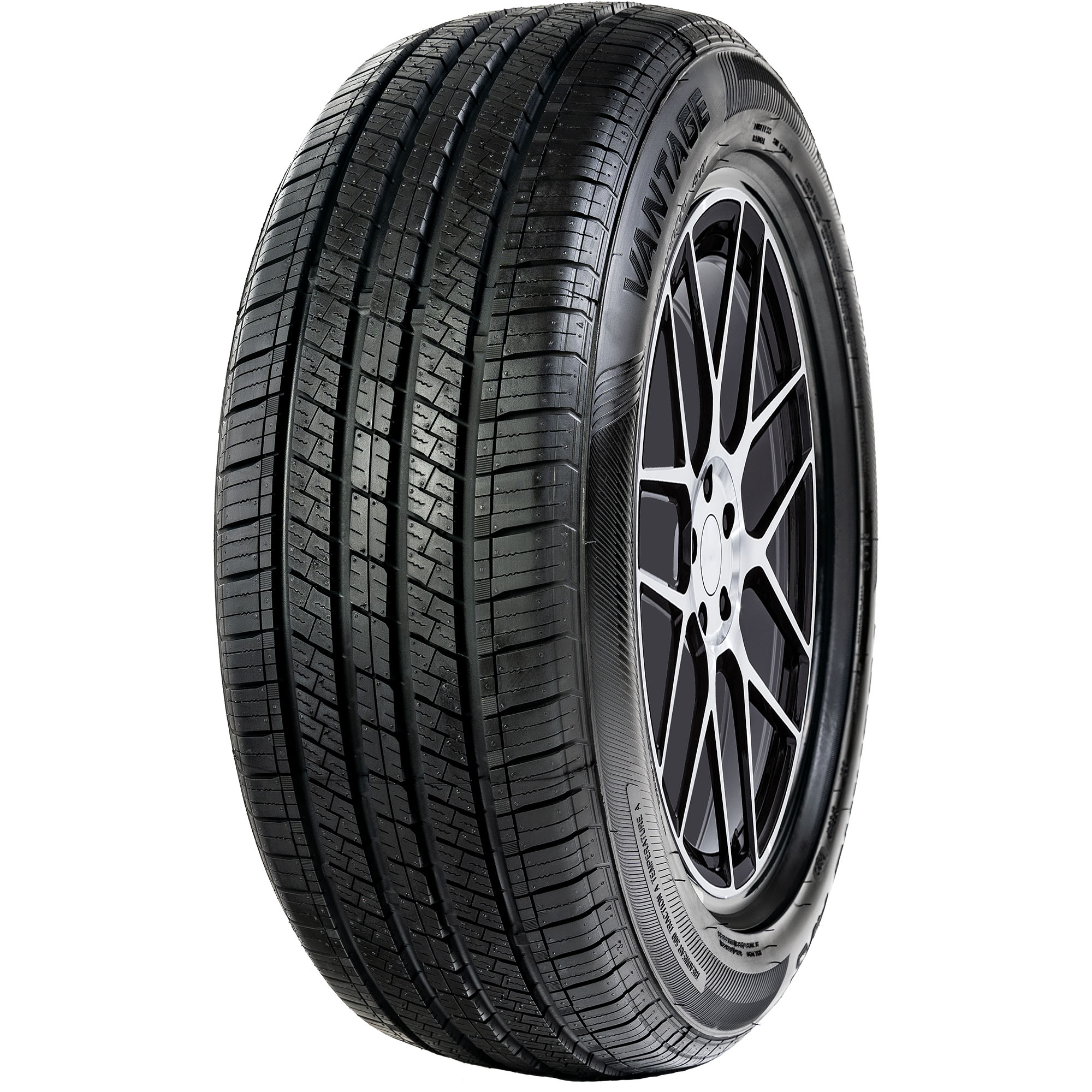 The Vantage Touring A/S is an all-season tire for coupes, sedans, and minivans, and features innovative tapered tread blocks, circumferential and angled grooves to resist hydroplaning, sipes concentrated at the shoulder, and a variable tread pitch for a quiet ride.