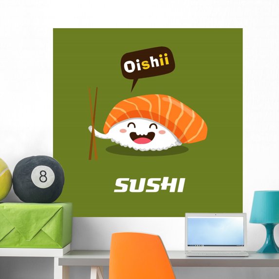 Vector Sushi Cartoon Character Wall Mural Decal Sticker, Wallmonkeys Peel & Stick Vinyl Graphic (36 in H x 36 in W)