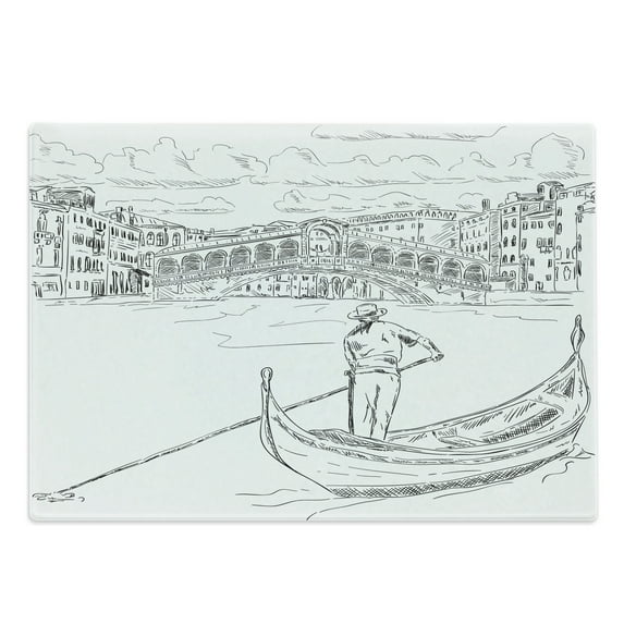 Hero image 0 of Venice Cutting Board, Rialto Bridge Gondola Romantic Italian Landmark Inspired Sketchy Cityscape, Decorative Tempered Glass Cutting and Serving Board, Large Size, Black White, by Ambesonne, 0 of 1