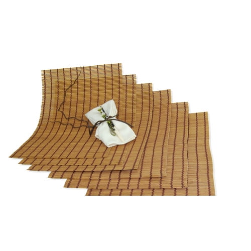 Features: -Each package contains 6 placemats. -Material: Bamboo. -Rectangular shape. -Primary Material: Bamboo. -Water Resistant: No. -Scratch Resistant: No. Product Type: -Placemat. Material: -Bamboo. Pattern: -Striped. Shape: -Rectangular.