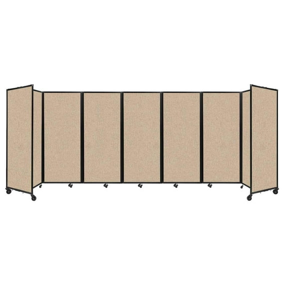 "Versare Room Divider 360 Portable Wall Partition | 7 Panels Wide | 19'6" x 6'10" Beige Fabric Panels"