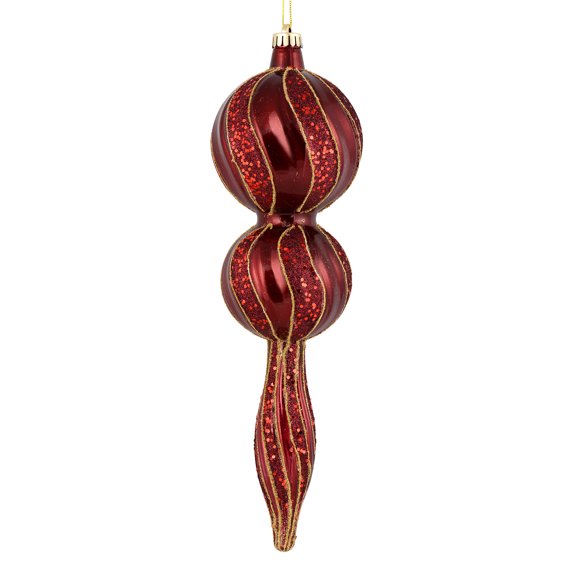 Vickerman 16.5" Wine Candy Glitter Finial. Create a beautiful holiday arrangement with this large Candy finial that features glitter accents. Made with shatterproof plastic. Ornament has a drilled cap