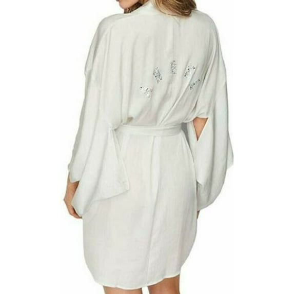 Victoria's Secret Dream Angels Short Satin Kimono Angel Rhinestone Robe White Size Med/Large Nwt