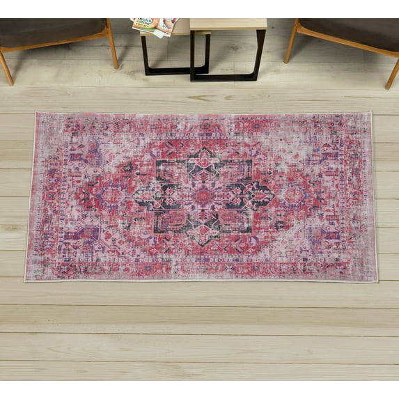 Hero image 0 of Vintage Decorative Rug, Ethnic Motifs and Bohemian Shapes in a Nostalgic Composition Folk Design, Quality Carpet for Bedroom Dorm and Living Room, 6 Sizes, Coral and Violet, by Ambesonne, 0 of 1