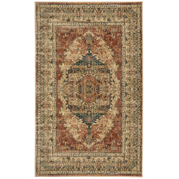- STYLE: We designed this classy rug from the mold of time with an antique look and distressed finish in burnt sienna or Apricot and Teal color options, with accents in blue and creamy yellow; ideal for vintage or Oriental décor; sturdy jute backing