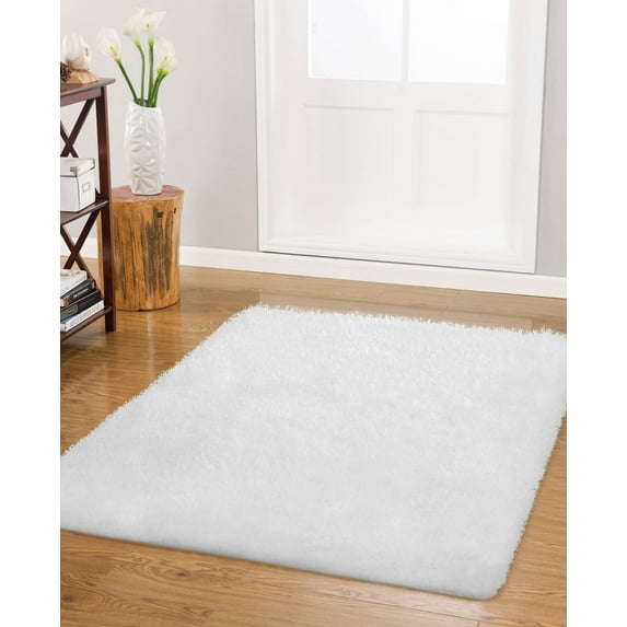 Vista Living Shag Rug Collection Solid Print Contemporary Area Rug, White