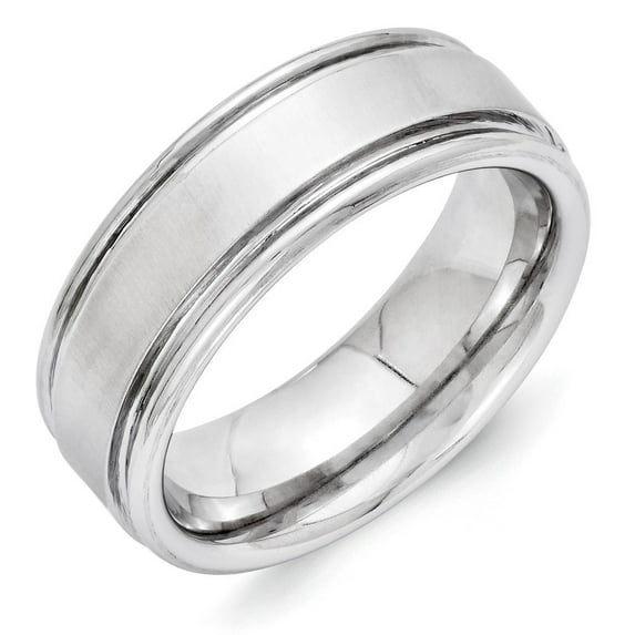 Vitalium Cross Satin Finish Center Rounded Edge 8mm Band Ring - Size 11.5 - 9.3 Grams in Cobalt Chromium - Product Attributes: - Engravable - Polished edges - - Thickness: < 2 mm - Band Width: 8 mm - Width of Item: 8 mm - Finish: Polished & Brushed - Engravable: Yes -WELCOME To Jewelry Web Fine Jewelry Gifts Offering; No Metal Stamp band style rings in Cobalt ; Width: 8MM ; Hypoallergenic ; Nickel Free ; Engravable ; Polished edges