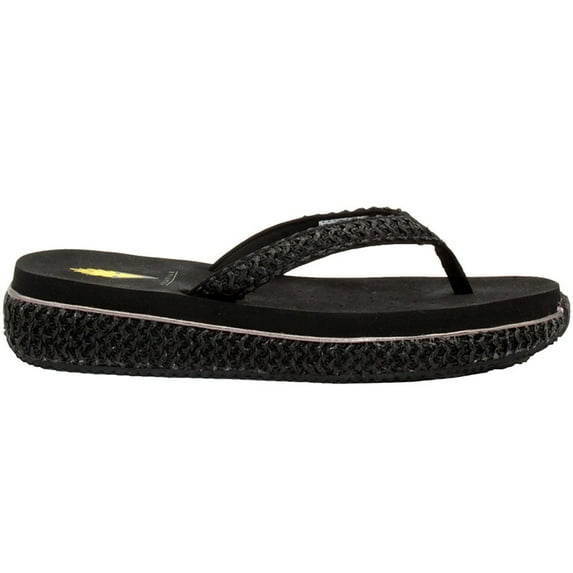 ‘Palau’ is Volatile’s summer essential, with a classic thong upper crafted in woven raffia and a low platform that lifts up every warm weather outfit. Featuring our signature ultra-comfort EVA insole and rubber traction outsole to keep feet comfortable, whether it’s hanging out by the pool, or for a full day of sightseeing. Style yours with everything from breezy dresses to jeans.