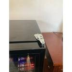 - Sleek Design: Transparent glass door with a black stainless steel frame and soft blue backlit LED lighting, suitable for any setting including offices, dormitories, and home kitchens.