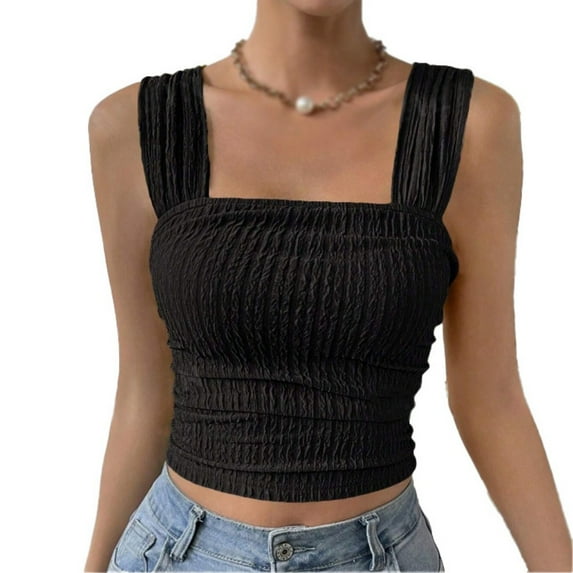 Hero image 0 of WBQ Women's Wide Strap Square Neck Crop Tank Tops Ribbed Texture Sleeveless Slim Fit Cami Shirts Backless Going Out Tops S-2XL, 0 of 6