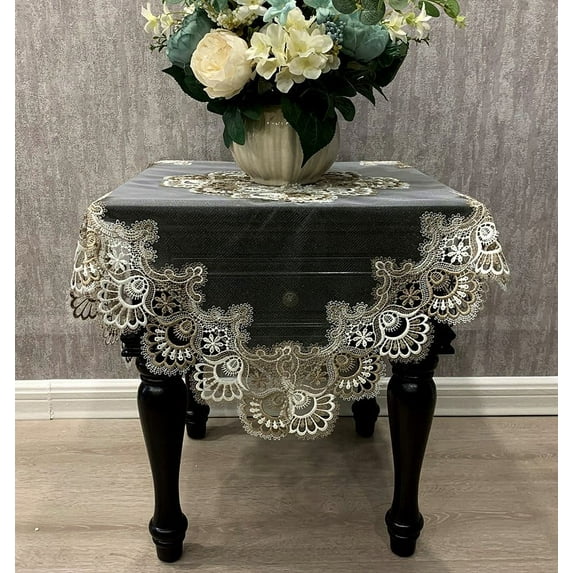 WCHUANG Square Tablecloth, Coffee Table Cover, Lace Bedside Table Cover Home Bedside Nightstand Small Table Cloth, EmbroideryTabletop Decoration