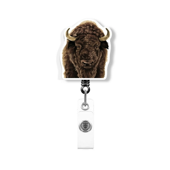 Hero image 0 of WIRESTER Acrylic Reel ID Holder Belt Clip Badge Retractable with Alligator Clip for Office Worker Medical Staffs, Nurse, Doctor, Teacher, Student - American Buffalo Bison, 0 of 5