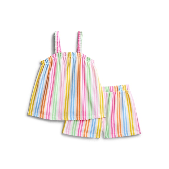 Wonder Nation Toddler Girls Ribbed Tank Top and Shorts 2-Piece Set, Sizes 12M–5T