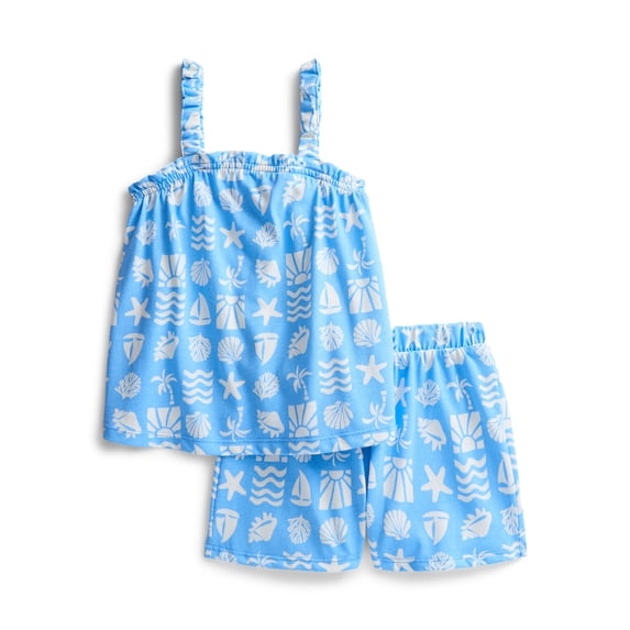 Wonder Nation Toddler Girls Ribbed Tank Top and Shorts 2-Piece Set, Sizes 12M–5T