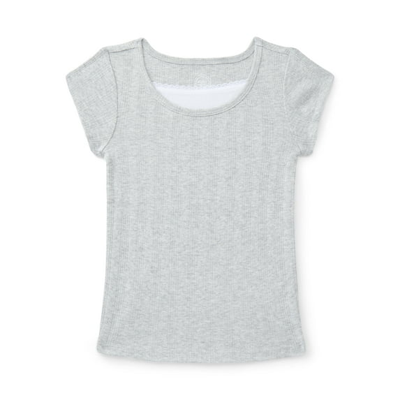 Wonder Nation Girls Pointelle Lace Top with Short Sleeves, Sizes 4-18, Plus