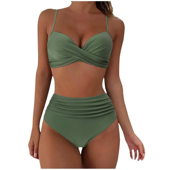 Hero image 0 of WREESH Womens Two Piece Swimsuit High Waisted Bikini Fashion Solid Bikini Push-Up Padded Swimsuit Beachwear Set Bathing Suit Green, 0 of 5