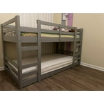 Walker Edison Solid Wood Twin over Twin Floor Bunk Bed, Grey