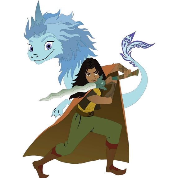 Walt Movie Raya and the Last Dragon Characters Standing Ready to Face Opponent Artwork Design Vinyl Wall Decal - Raya and Sisu with Sword from Animated Feature Film for Nursery and Kid's Room Vinyl W
