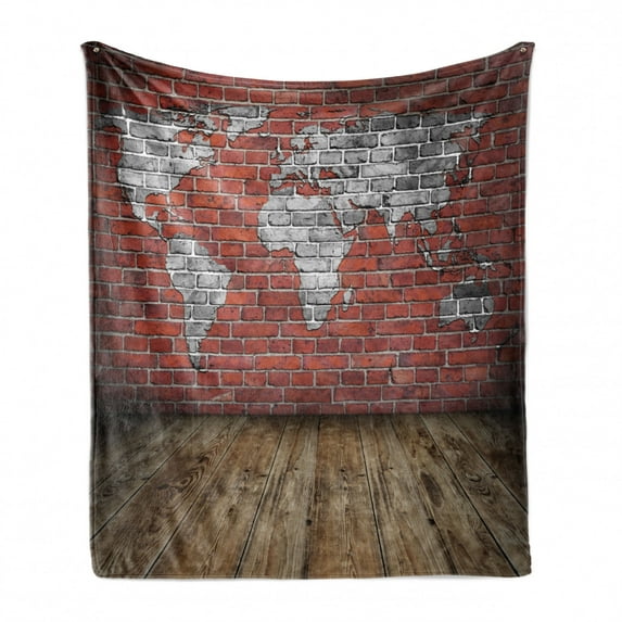 Hero image 0 of Wanderlust Soft Flannel Fleece Throw Blanket, Vintage Grunge Map Room Style Brick Rustic Geographic Interior Travel, Cozy Plush for Indoor and Outdoor Use, 50" x 70", Cinnamon Pale Grey, by Ambesonne, 0 of 5