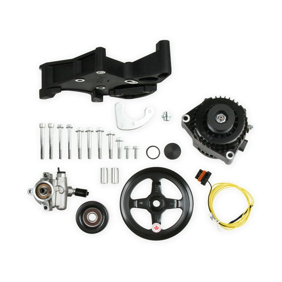 - Comprehensive Kit: This complete driver's side kit includes a 130 Amp alternator, Corvette aluminum power steering pump, and associated pulleys and brackets.