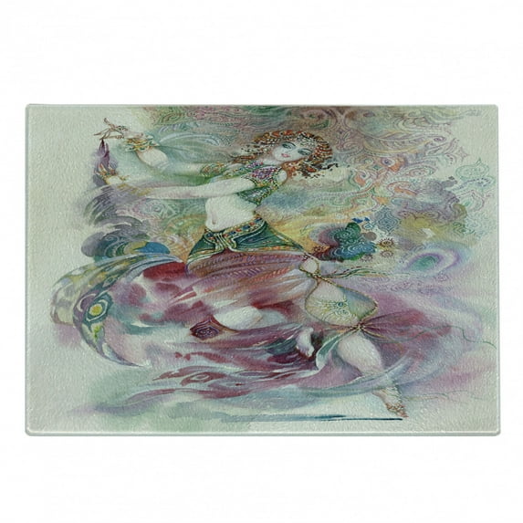 Hero image 0 of Watercolor Cutting Board, Oriental Dance Theme Young Girl Performing in Traditional Costume Fantasy, Decorative Tempered Glass Cutting and Serving Board, Small Size, Multicolor, by Ambesonne, 0 of 1