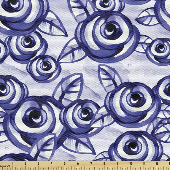 Hero image 0 of Watercolor Flowers Fabric by the Yard, Classical Feminine Rose Branch Bouquet Romantic Essence Valentines, Decorative Upholstery Fabric for Sofas and Home Accents, Violet Blue by Ambesonne, 0 of 5
