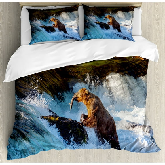 Waterfall Duvet Cover Set Queen Size, Image of Large Bear by a Rock in Alaska Waterfall Wildlife in Earth Art Print, Decorative 3 Piece Bedding Set with 2 Pillow Shams, Multicolor, by AmbesonneWaterfall Duvet Cover Set Queen Size Image Large Bear Rock Alaska Waterfall Wildlife Earth Art Print Decorative 3 Piece Bedding Set 2 Pillow Shams MuWaterfall Duvet Cover Set Twin Size Image Large Bear Rock Alaska Waterfall Wildlife Earth Art Print Decorative 2 Piece Bedding Set 1 Pillow Sham MultWaterfall Duvet Cover Set King Size Image Large Bear Rock Alaska Wildlife Earth Art Print Decorative 3 Piece Bedding 2 Pillow Shams Multicolor Ambeso