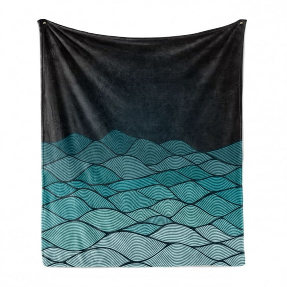 Hero image 0 of Waves Soft Flannel Fleece Blanket, Sea Pattern Ocean Fluid Dynamics Body of Water Doodle Blue Ombre, Cozy Plush for Indoor and Outdoor Use, 60" x 80", Dark Petrol Blue and Sea Blue, by Ambesonne, 0 of 5