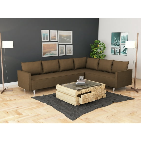 Alonsa new model 4-seat sectional sofa couch with reversible chaise lounge has a sleek modern look that will look great with any style in your home. Soft fabric upholstery on hardwood frame with overstuffed back cushions and foam seat cushion. The more you sit in Alonsa sectional sofa couch the better. Enjoy cozy family movie nights and host classy cocktail parties alike all at this stylish sectional sofa.Perfect for apartment, condo, loft, bungalow, house. The perfect centerpiece for your seating arrangement, it blends contemporary appeal with simple sophistication. The upholstery is accented with jumbo stitch detailing and tufted accent for a refined yet understated look. The sofa couch and the chaise can be separated, if you need to make more space in your living room ensemble. Alonsa L-Shape sofa couch is your first selection.