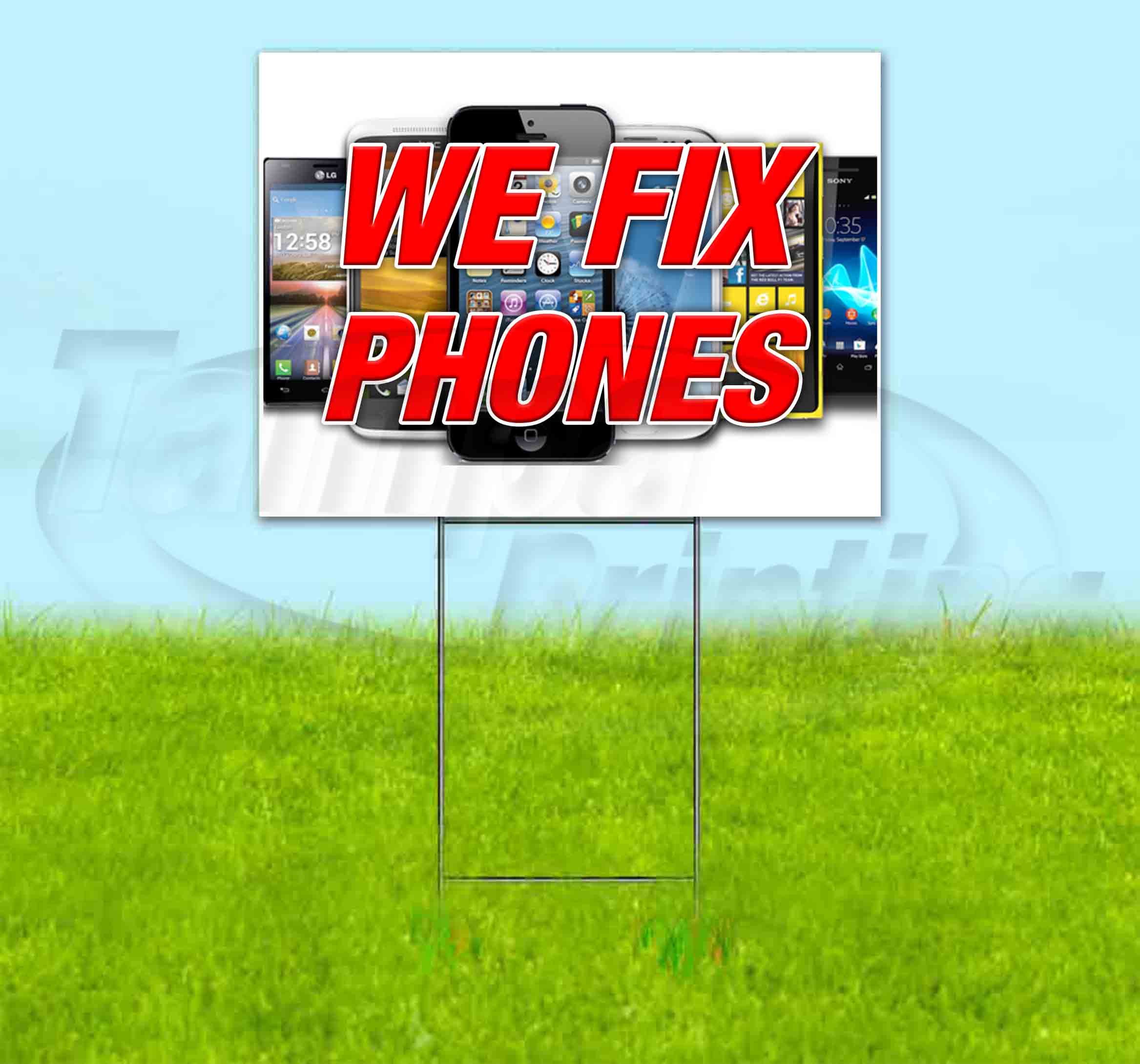 We Fix Phones V2 (18" X 24") Yard Sign, Includes Metal Step Stake