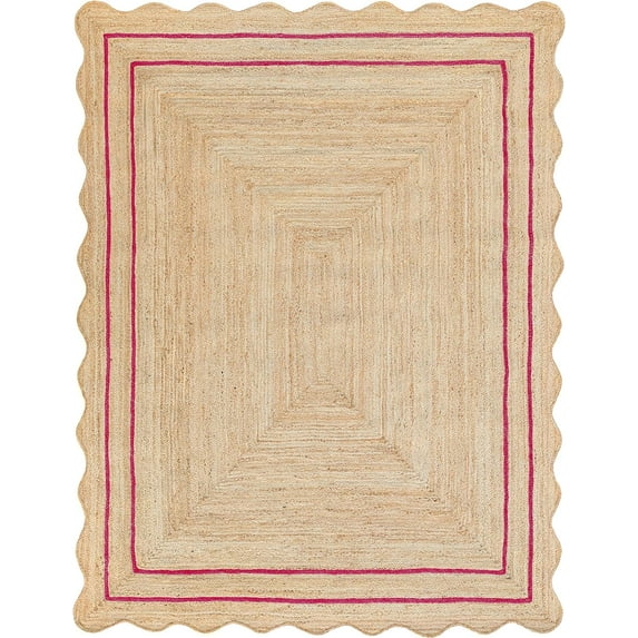 Hero image 0 of Weaving Village Wave Scalloped Natural Jute Rug Boho Jute Rug Entryway Runner Rug Farmhouse Scallop Rug, Dark Pink (8'x10'), 0 of 5