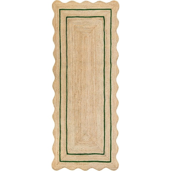 Hero image 0 of Weaving Village Wave Scalloped Natural Jute Rug Boho Jute Rug Entryway Runner Rug Farmhouse Scallop Rug, Green (2'6"x18'), 0 of 5