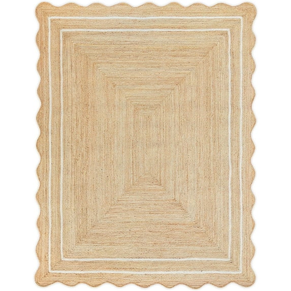 Weaving Village Wave Scalloped Natural Jute Rug Boho Jute Rug Entryway Runner Rug Farmhouse Scallop Rug, Off White (2'x3')