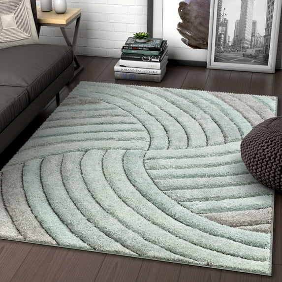 Well Woven Tilly Light Blue Geometric Stripes Thick Soft Plush 3D Textured Shag Area Rug