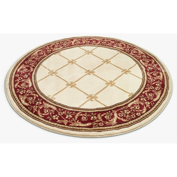 Well Woven Timeless Fleur De Lis Trellis Floral Border Ivory 5'3" Round Area Rug