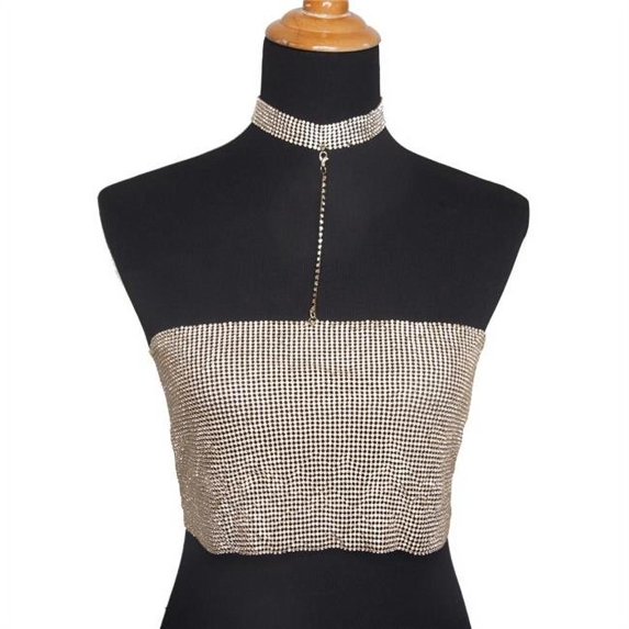 Western Fashion 8454 Rhinestone Halter Top, Gold
