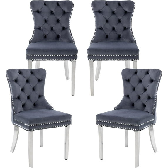 Hero image 0 of Westice Dining Room Chairs Set of 4, Tufted Velvet Chairs with Modern Stainless Steel Legs, Rivet Trim Metal Pull Ring Large Back for Kitchen Dining Room Restaurant, Dark Gray, 0 of 9