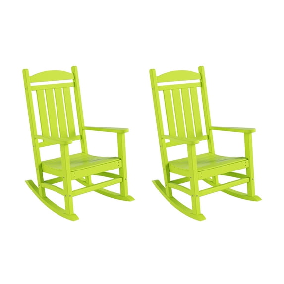 WestinTrends Malibu Outdoor Rocking Chair Set of 2, All Weather Poly Lumber Adirondack Rocker Chair with High Back, 350 Lbs Support Patio Rocking Chair for Porch Deck Garden Lawn, Lime