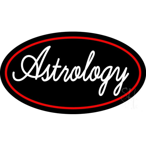 White Astrology Red Border With Oval LED Neon Sign 20" Tall x 37" Wide - inches Black Square Cut Acrylic Backing, with Dimmer - Bright and Premium built indoor LED Neon Sign for Storefront.