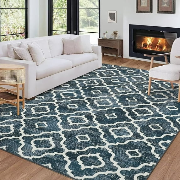 Hero image 0 of Garvee Area Rug 5x7 Farmhouse Geometric Moroccan Rug Washable Print Rug Living Room Bedroom Rug for Dining Room Home Office, Blue, 0 of 6