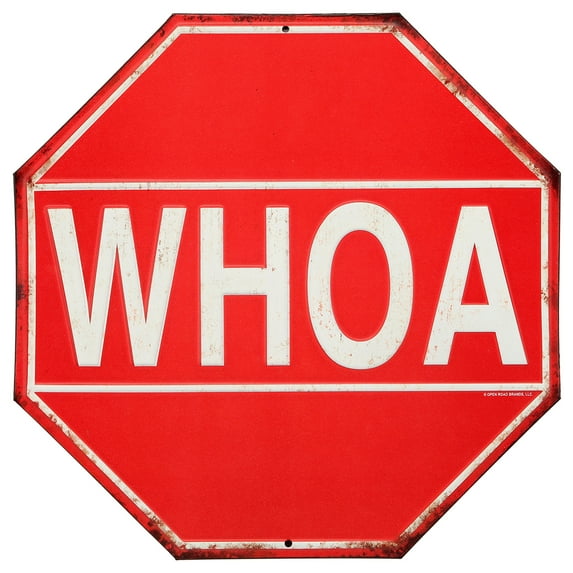 Say "Stop" with a western accent by posting our WHOA stop sign. Made from embossed tin, it's small enough to fit whever you want to post it and large enough to get attention. We’ve given you a head start on the rusted look, just for good measure.
