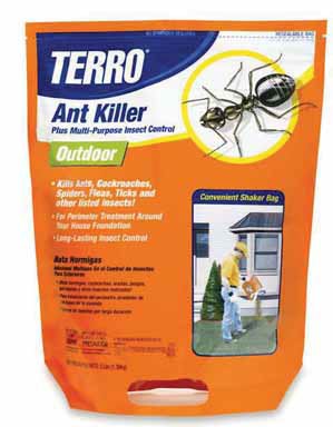 Create a barrier against ants, fire ants, roaches, fleas, earwigs and more with TERRO Ant Killer Plus. This fast-acting treatment works within 24 hours to keep your home free of the most persistent pest insects, while also offering residual control. For increased effectiveness, this product can be applied as a perimeter treatment around the foundation of your home, spread on lawns, or used a spot treatment on ant hills and fire ant mounds. TERRO Ant Killer Plus is packaged in a resealable shaker bag to allow for easy application. Simply open the top, grab the handle located at the bottom of the bag, and start spreading the granules. There’s no need to use a spreader. To apply as a perimeter treatment, create a 3 to 10 foot band of granules along your foundation. To treat ant hills (except fire ants), apply 1 to 2 teaspoons on granules over and around the ant hill. Be sure to water the granules lightly immediately following application. To control fire ants, apply ½ cup of granules over, and 2 feet around each mound. After apply, gently water the product with a minimum of a gallon of water to each mound area. Avoid using a high-pressure hose, which could disturb the ants and cause migration.