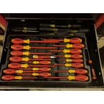 Treated myself to this pro set of screwdrivers. Overall they are comfortable and very high quality. My initial intent was to store them in tool bags, But the tray they come in was much higher quality than I expected. However it was too big for my rolling toolbox. So after a bit of faffing around I was able to to pimp my toolbox with this high quality set of tools. See photos. Couple of them has slight mold wear marks on the shafts, but s shark knife cleaned them up nicely. Overall I am happy and slowly growing my wish collection.