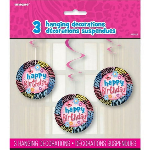 Wild Birthday Hanging Decorations, 3ct