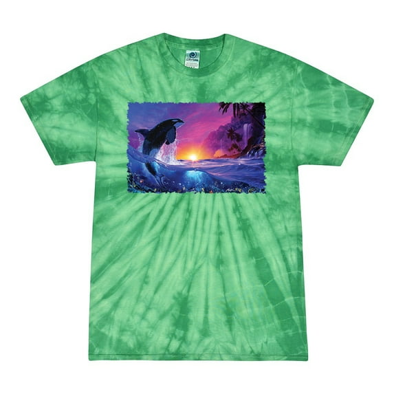 Hero image 0 of Wild Bobby, Jumping Whale During Beach Sunset, Animal Lover, Tie-Dye Tees, Spiral Kelly, X-Large, 0 of 3