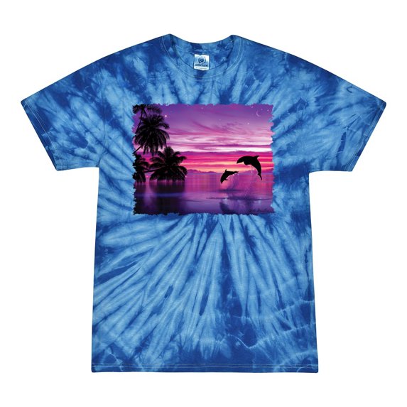 Hero image 0 of Wild Bobby, Majestic Dolphins Jumping During Sunset, Animal Lover, Tie-Dye Tees, Spiral Royal, Small, 0 of 3