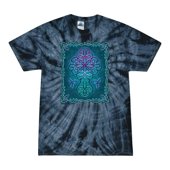 Wild Bobby, Neon Celtic Cross, Inspirational/Christian, Tie-Dye Tees, Spiral Navy, Small