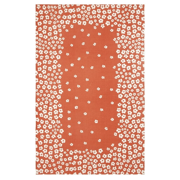 Wild Flower Collection Cotton Screen Printed Rug (4'x6')-Coral